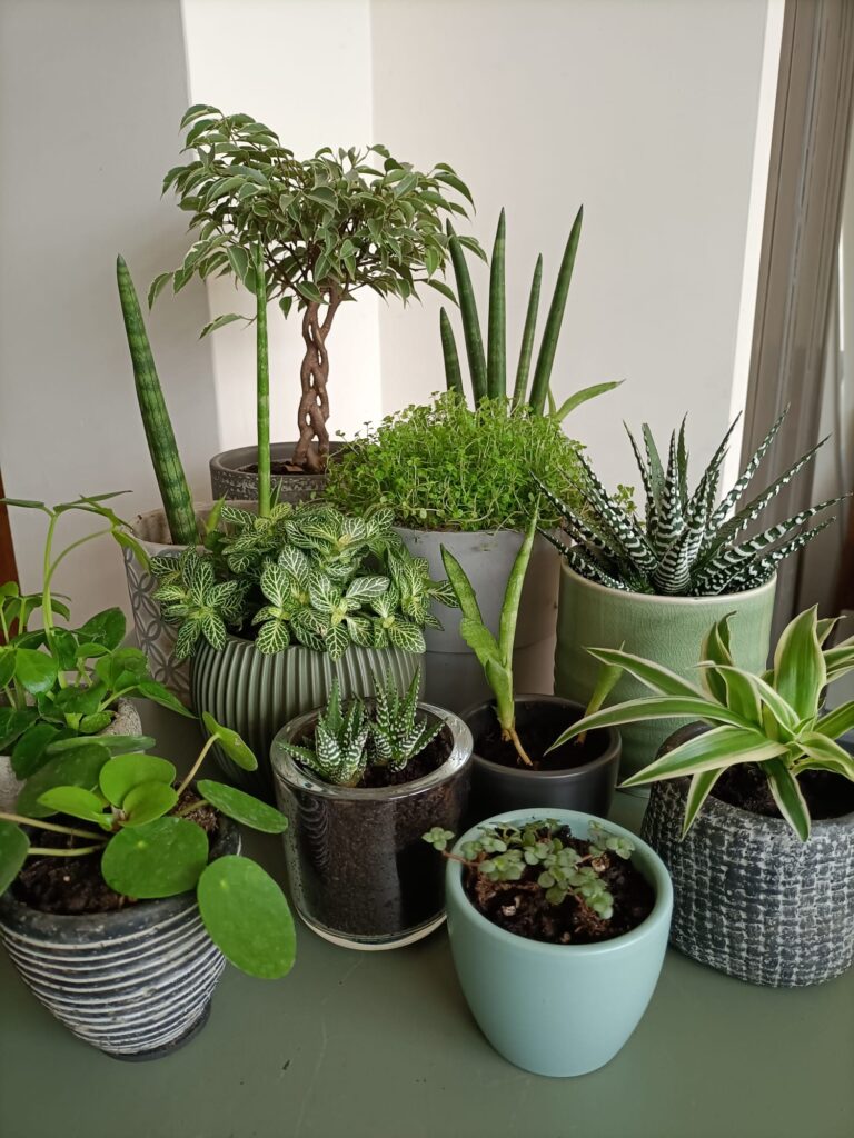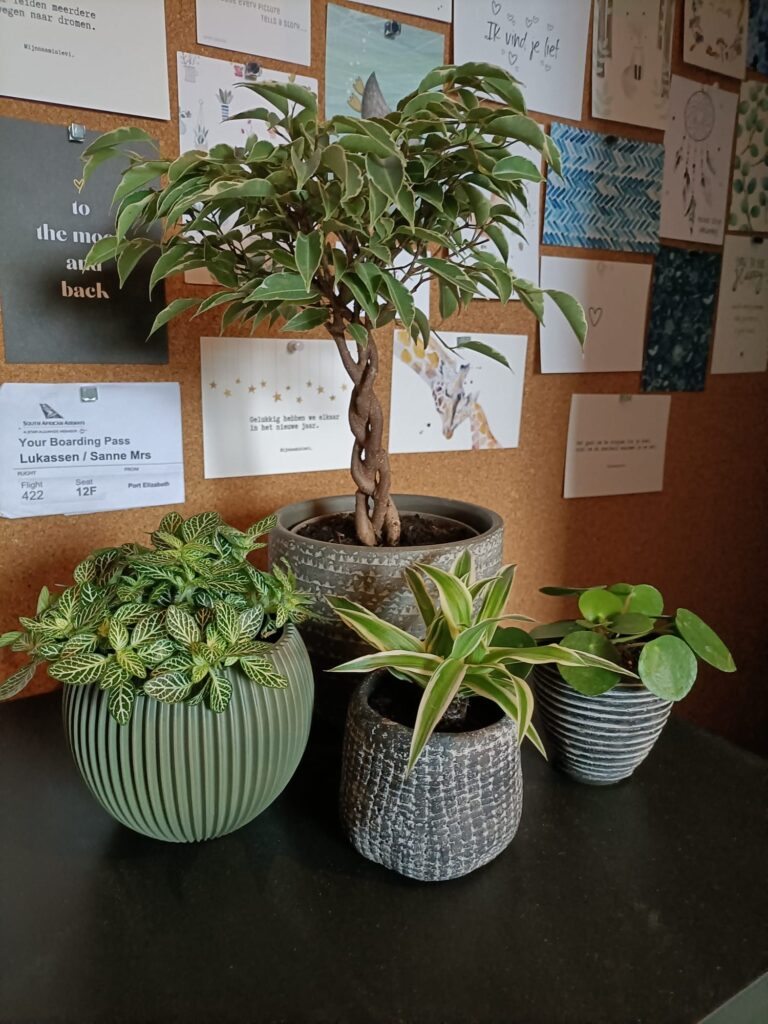 Sinds een aantal jaar heb ik plantjes op mijn kamer. Ik vind het er leuk uit zien en probeer de potjes waar ze in staan bij elkaar te laten passen en bij mijn kamer.